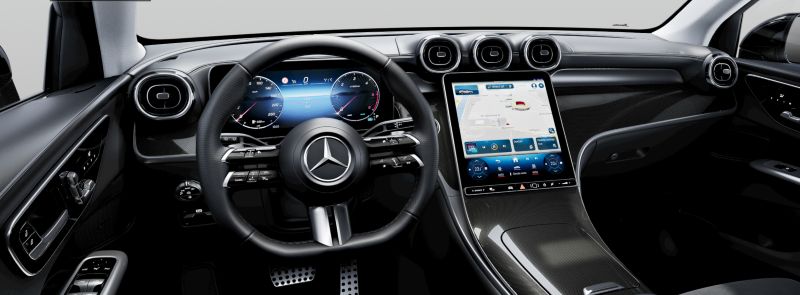 Sportovní zvuk motoru, Sada navigace MBUX Premium, Sada komfortních funkcí zrcátek, Vnitřní zpětné zrcátko s automatickou funkcí proti oslnění, Vnější elektricky sklopná/výklopná zpětná zrcátka, Asistent prevence kolize Active Brake Assist, Upozornění na zapnutí zadních bezpečnostních pásů na sdruženém přístroji, Čidlo pro rozpoznání dětské sedačky na sedadle spolujezdce vpředu, Bederní opěrky nastavitelné 4 směry, Prahové lišty, vpředu podsvícené s nápisem "Mercedes-Benz", Funkce průhledné kapoty, Sada pro smartphone, Apple CarPlay, Android Auto, Asistent hlídání mrtvého úhlu, Elektricky nastavitelné sedadlo řidiče s paměťovou funkcí, Elektricky nastavitelné sedadlo spolujezdce s paměťovou funkcí, Aktivní asistent jízdy v pruzích, Středový airbag, Stěrače čelního skla s dešťovým senzorem, Mercedes-Benz e-call, Navigace umístěná na pevném disku, Automatická 9stupňová převodovka 9G-TRONIC, Sdružený 12,3" displej, Centrální 11,9" displej, Multimediální systém MBUX, Digitální přijímač rozhlasového vysílání DAB, Automatická klimatizace THERMATIC, Sada osvětlení interiéru, Elektrické otevírání/zavírání víka zavazadlového prostoru EASY-PACK, KEYLESS-GO start, Bezdrátové nabíjení pro mobilní telefony, Rozšířená realita pro navigaci multimediálního systému MBUX, deska a vrchní díl dveří potažené syntetickou kůží ARTICO, se vzhledem jemné kůže, Podvozek AGILITY CONTROL se selektivními tlumiči