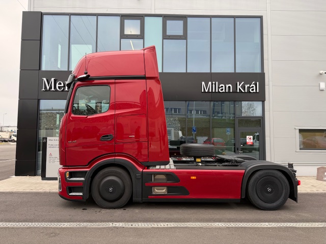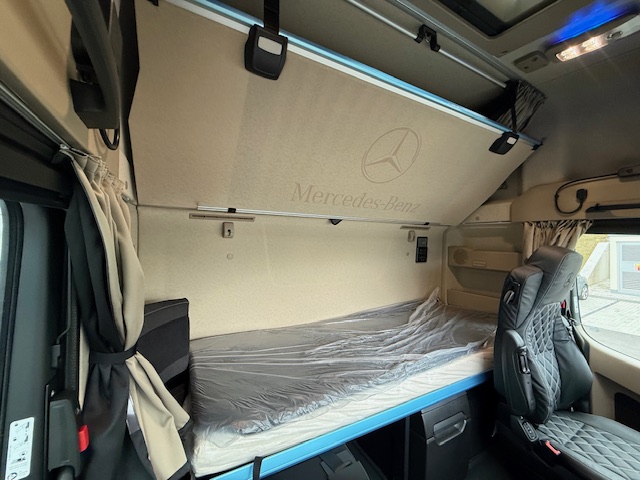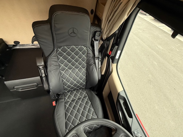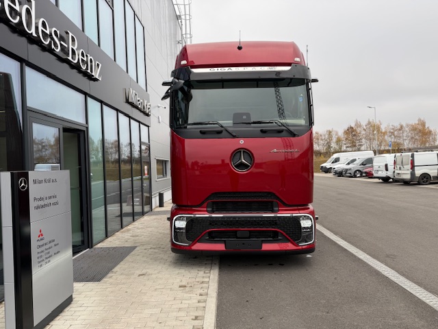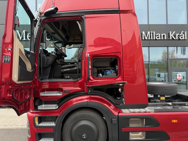 A1A Vzduchové odpružení přední nápravy A1D Přední náprava 8,0 t A5A Stálý převod i = 2,278 C0G Zadní převis 1050 mm C5P Rám šroubovaný C6G Řízení Servotwin C7T Akumulátory a vzduchojemy na konci rámu C8Z Zakrytování mezi nápravami CSJ Zakrytování podvozku ProCabin, standardní CZE Přední blatník aerodynamicky optimalizovaný D0A Kožený volant D0Z Koncepce SoloStar D1D Sedadlo řidiče odpružené, klimatizované D2K Masážní funkce pro sedadlo řidiče D3A Lůžko horní široké, nivelační, komfortní D3L Potah sedadla spolujezdce Dinamica, černý D3M Matrace komfort plus, spodní D3N Matrace komfort plus, horní D3S Potah sedadla řidiče, kožený D4E Chránič matrace pro spodní komfortní lůžko D4K CabLock D4Q Zrcátko na holení D4S Sluneční clona elektrická, 1dílná D4Z Sluneční roleta, boční, strana řidiče, spolujezdce D5F Ambientní osvětlení LED, Drive and live D5K Světlo čtecí LED 2x, dlouhý nastavitelný krk D5O StyleLine D5Z Kobercový potah na motorovém tunelu D6C Klimatizace nezávislá, elektrická D6G Klimatizace automatická D6I Využití zbytkového tepla chladící kapaliny D6V Hluková a tepelná izolace kabiny D7F Úložné schránky nad čelním sklem, jedna uzamyk. D7G Víka úložných prostorů, na obou stranách D7I Zásuvky do úložných schránek D7K Zásuvka pod palubní deskou D7N Flexibilní odkládací prostor nad čelním sklem D7V Stolek, na straně spolujezdce D8M Střešní okno elektricky ovládané, průhledné D9BB5O Deletion Drawers, under bed E1Z Akumulátory AGM, 2x 12 V / 220 Ah, bezúdržbové E2J Jističe namísto pojistek E3E Zásuvka přídavná 12V/15A, u nohou spolujezdce E3M Zásuvka 24 V/15 A, za sedadlem E3R Zásuvka přídavná 24 V/25 A, u nohou spolujezdce E3W PSM 2. generace E5A 1 spínač pro elektroinstalaci nástavby E5B 2 spínače pro elektroinstalaci nástavby E6Y Akustická výstraha při couvání / varovná světla E8F Konektor USB-C v úložném prostoru nad čelním sklem E9G Elektroinstalace pro dodateč. montáž spotřebičů E9I Příprava pro spínač pro zvedací nápravu návěsu F0T Osvětlená hvězda Mercedes-Benz F2A Varianta podlahy, rovná podlaha F2H Šířka kabiny 2,50 m F2P Kabina, uložení 765 mm F2X GigaSpace F3C Uložení kabiny komfortní, na vzduchových měších F3R ProCabin Giga, rovná podlaha F3Y Kabina se sklápěcí elektrohydraulikou F4T Horní schod, lakovaný F4U A sloupek aerodynamicky optimalizovaný, lakovaný F4V Aerodynamické zakrytování A sloupku F4Z Úložná schránka vlevo pod kabinou F5E Spoiler střešní,pevný, s boč. spoilery na kabině F5L Sluneční clona vnější F6Q Houkačka podtlaková F6V Držák MirrorCam chrom., spodní kryt v barvě kabiny F7O ExtraLine ProCabin F8H 2 klíče s dálkovým ovladačem, přídavné F8Z Ochrana proti odcizení a vloupání FAV Kabina ProCabin G0R Šroubované nosné vzpěry převodovky G2G Převodovka G 291-12/16,462-1,0 J2G DAB + rádio J2J Sound system Dolby Digital 5.1 J2Y Vysílačka 24 V J3U Možnost aktivace v aplikaci FleetBoard Manager J5P Bezdrátové nabíjecí zařízení pro mobilní telefony J9D Příprava pro evidenci mýtného K0W Přídavná nádrž, vpravo K2D Nádrž 680+120AdBlue,vlevo,650x700x2170mm,Alu,stup. K5Q Palivová nádrž se sítkem v hrdle K6K Přídavná nádrž 430l, vpravo,650 x 700 x 1100mm,Alu K8D Výfukový systém, konc. trubka vyv. vpravo horiz. L1K Hlavní světlomety LED matrix L1L LED light strip L1P Zadní světla, provedení LED L2G Boční odbočovací světla LED L3G Světlomet pracovní, spodní L6B Intelligent Light Perfomance L9A Příprava pro dodatečnou montáž výstražných světel L9C Elektroinstalace pro přídavná světla, střecha L9AA6O Bez mlhových světlometů vpředu L9AC6O Bez aut. ovládání světel a přisvícení do zatáček M7I Ochrana chladiče před hmyzem O3C Safety Package O3J Climate Package se zvukovou/tepelnou izolací O3O Příslušenství, linie interiéru O3R Actros L O8K Driving Package O8L Comfort Package O9H Actros Driver Extent OYL Stowage Package OYM Sight Package s hlavními světlomety LED matrix OYO Media Package s připojením USB-C Q5A Točnice, nízkoúdržbová R0L Pneumatiky na přání zákazníka (přední náprava) R0N Pneumatiky na přání zákazníka (zadní náprava) R0X Plné zakrytování kol, aerodynamické R8F Držák rezervního kola provizorní R8P Rezervní kolo / rezervní ráfek R9AA3O Bez krytů matic kol S1I Asistent udržování odstupu S2E Active Drive Assist 3 S3A Airbag řidiče s předpínači bezpečnostních pásů Y1T Držák na notebook Y3M Protikorozní nástřik rámu Y4H Držák klínu Y4X Hadice pro huštění pneumatik, 25 m