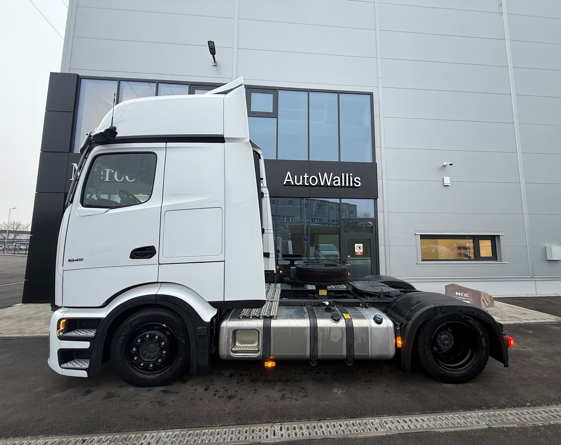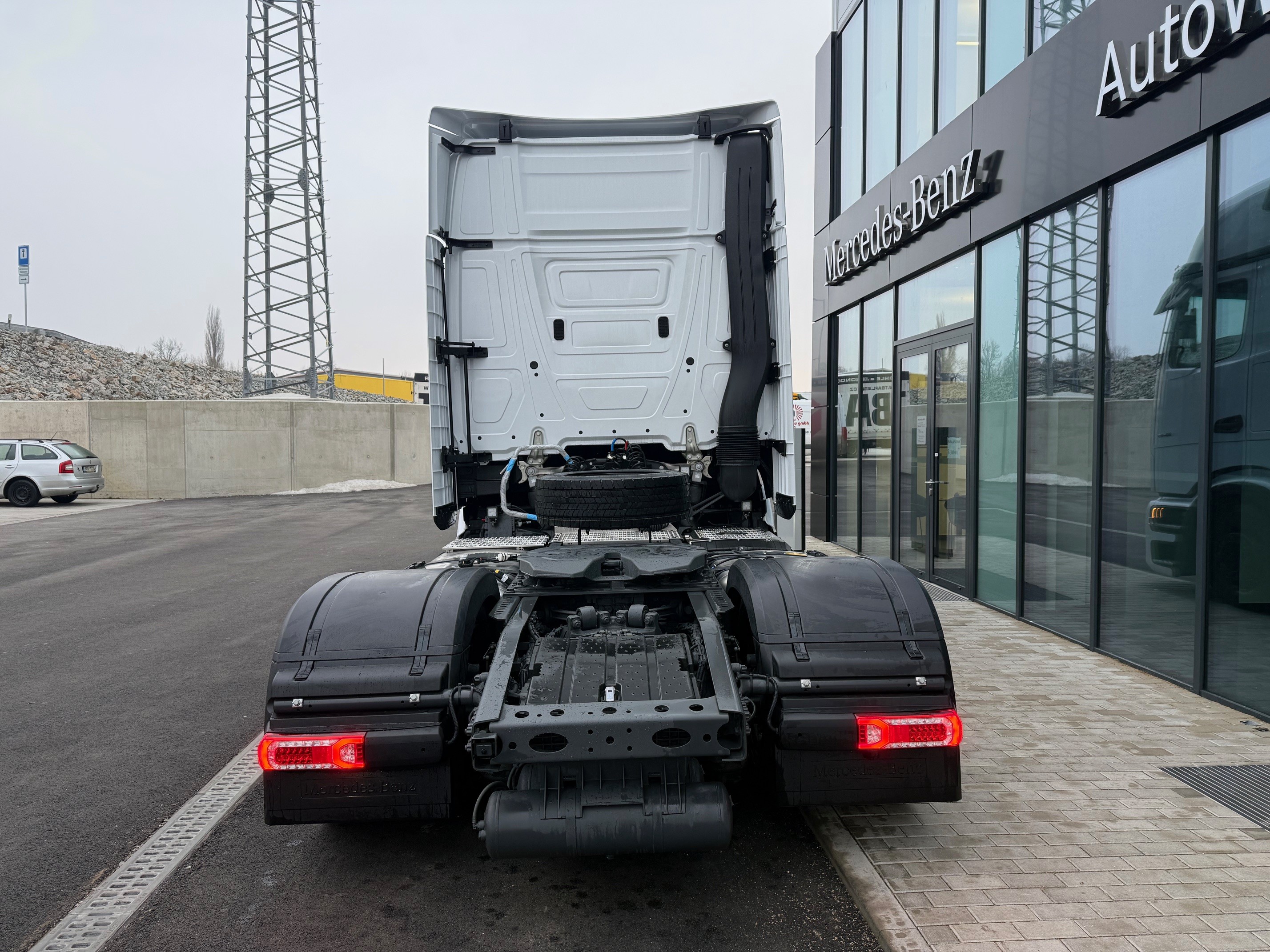 A1A Vzduchové odpružení přední nápravy A1D Přední náprava 8,0 t A1Z Přední náprava, prohnuté provedení A2E Zadní náprava 13 t, talířové kolo 440, hypoidní A3D Zadní náprava s neřízeným aktivním mazáním A5A Stálý převod i = 2,278 B1B Elektronický brzdový systém s ABS a ASR B1F Vyhřívání sys. rozvodu stlač. vzduchu (APU/EAPU) B1H Ovl. el. jedn. stlač. vzduchu park. brzdy, střed B2A Brzdy kotoučové na přední i zadní nápravě B2X Parkovací brzda elektronická, s funkcí Hold B4A Kondenzační senzor pro stlačený vzduch B4M Vzduchojem ocelový B5J Elektr. a brzdové přípojky pro návěs níže uložené C0G Zadní převis 1050 mm C1W Rozvor 3700 mm C5B Nášlapná plošina nad rámem, částečné pokrytí C5D Schůdky za kabinou, vlevo C6C Servořízení jednookruhové C6I Čerpadlo posilovače řízení, řízené C7F Zábrana proti podjetí přední (ECE), alu C7T Akumulátory a vzduchojemy na konci rámu C8C Blatníky zadní pro šířku vozidla 2500 mm C8H Blatníky 3dílné s ochranou proti ostřiku C8I Blatníky vpředu s ochranou proti ostřiku D0S Tlakovzdušná přípojka v kabině řidiče D0U Detektor kouře v kabině D1N Sedadlo spolujezdce, sklopný sedák D2N Odjištění opěradla sedadla řidiče D2Y Kontrola zapnutí bezpečnostních pásů D3B Lůžko spodní komfortní D4T Záclona napříč kabinou před lůžkem D6M Topení přídavné teplovodní, pro kabinu D7J Zásuvky pod postelí D8X Podstavec sedadla, snížený o 40 mm DUP0 Konfigurační kód E4B Rozhraní pro přenos dat FMS 2.0 (fleet management) E5H Spínač nočního svícení, zelený E5K Spínač MirrorCam, u lůžka E6A Zásuvka pro přívěs 15pólová, 24 V E7F Kabelové dálkové ovládání vzduchového odpružení E8D Konektor USB-C v bočním úložném prostoru, vlevo E8E Konektor USB-C v bočním úložném prostoru, vpravo F0F Boční modul, vozidlo kategorie N3 F1R Kabina L dlouhá F3W Kabina sklápěcí mechanicko-hydraulicky F4H Zadní stěna kabiny bez oken F4X Dvířka venkovní schránky, vlevo F4Y Dvířka venkovní schránky, vpravo F6D Čelní sklo determální s pruhem F6I Čelní zrcátko, vyhřívané F6T MirrorCam F7A Nárazník, s plastovými rohy F7C Nárazník vpředu s tažným okem F7T Dveře, prodloužené F7X Vstup do kabiny řidiče levý/pravý, pevný F8B 2 klíče s dálkovým ovladačem F8E Centrální zamykání F8F Centrální zamykání komfortní F8V Světelný senzor F8W Dešťový senzor G0K Jízdní program Economy/Power G0T Predictive Powertrain Control G2E Převodovka G 281-12/14,93-1,0 G5A Jednokotoučová spojka G5G Řazení automatizované Mercedes PowerShift 3 G5L PowerShift Advanced H2C Vzdálenost mezi osou ZN a osou točnice +600 mm J0U Remote update of driving assistance map J1M Dig. tachograph, 2nd gen., version 2, ADR J1S Tachograf VDO J2U Navigace On Board J3Z Měření zatížení na nápravách se zobrazením na FSS J6E Multimedia cockpit Interactive 2 J6W Zpětná kamera J7A Truck Data Center 7 J7V Mapové podklady pro Evropu J8G Příprava pro Remote Truck App J8U Příprava pro Truck Data Center 8 J9A Elektroinstalace pro vysílačku, 12V DIN slot K0T Hlavní nádrž, vlevo K0W Přídavná nádrž, vpravo K5M Uzávěr nádrže uzamykatelný K6Q Přídavná nádrž 330l, vpravo,735 x 565 x 950 mm,Alu K8R Nádrž 650l+85l AdBlue,vlevo,735x565x2200,alu,sch. L0A Osvětlení vozidla podle předpisu UN-R 48.06 L1C LED světlomety pro denní svícení L1W Odbočovací světla LED se světelným podpisem L2H Poziční světla, blikající L3F Světlomet pracovní, spodní M0C Spodní kryt proti víření prachu M0E Zvýšení kroutícího momentu na 12. převod. stupeň M0Q Protihlukové zakrytování dle předpisu ECE NGL, úro M3B Motor OM471, R6, 12,8 l, 330 kW (449 k), 2200 Nm M4V Zvýšení točivého momentu v přev. stupních 7-11 M4X Motor v provedení Euro VI, E M5D Motor OM471, 3. generace M5V Motorová brzda, zvýšený výkon M6E Turbodmychadlo, spotřebově optimalizované M6R Air compressor, two-stage, deactivatable M7T Vodní pumpa, řízená M8B Sání vzduchu za kabinou, vně M8N Systém vzduch. filtrů, životnost přes 300 tis. km O0T TruckLive O3K Active Safety O7L Sada chrom pro interiér OWY Interior measures upgrade Q0W Točnice z výroby Q4G Výška točnice, H = 140 mm Q4X Točnice, manuálně mazaná Q5N Točnice, s podložkou, SAF GF SK-S 36.20 Q6F Montážní podložka, integrovaná v točnici Q6Z Úhelník pro montáž točnice s rastrem děr R0N Pneumatiky na přání zákazníka (zadní náprava) R0Z Kryty matic kol R1Q Ráfky 9,00 × 22,5 S1D Asistent regulace stability (ESP) S1H Asistent jízdy v pruzích (LDWS) S1L Asistent sledování bdělosti S1O Asistent dopravního značení S1Y Kontrola tlaku v pneumatikách S2D Active Brake Assist 6 S2H Active Sideguard Assist 2 S2L Přední monitorovací asistent (MOIS) S4A Příprava pro alkohol tester s imobilizérem S5A Omezovač rychlosti 90 km/h (ECE) S5Z Tempomat a temposet U2G Výfukový box U3S Elektronická architektura 2. generace V0Q Vozidlo plnící GSR, fáze B V0S Vozidlo třídy N3 V1A Actros V1X Volumer V2B Actros – modelová generace 5 V8A Číslo podvozku VIN W9Z Hmotnostní varianta 18,0 t (7,5/11,5) X1S Štítky a dokumentace česky X2E Typový štítek, EU X2N Upozornění „L”, zákaz nočních jízd v Rakousku X3W Záruka na hnací řetězec, 3 roky / 450 000 km X3CA0N TRUCKTraining – školení pro 2 řidiče Y1X Lednice výsuvná, pod lůžkem Y4A Zvedák 12 t / 19 t Y4I Klín podkládací Y4R Nástavec pro huštění dvojmontáže, bezdušové pneu Y4Y Hadice pro huštění pneumatik Y4Z Tlakovzdušná pistole, s hadicí Z4P Profil nádrže, široký Z4Q Profil nádrže, nízký Z5E OM 471 Z5X Levostranné řízení Z5Y Vozidlo pro pravostranný provoz V9G Technické změny – modelový rok říjen