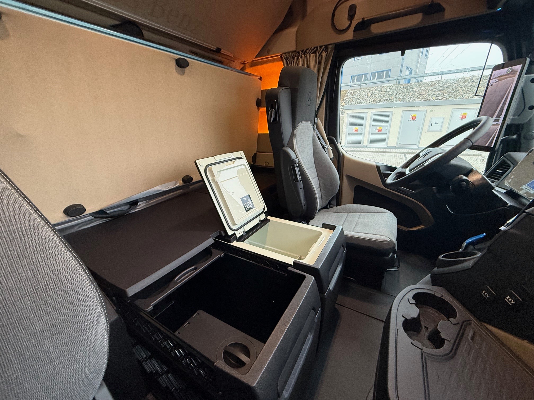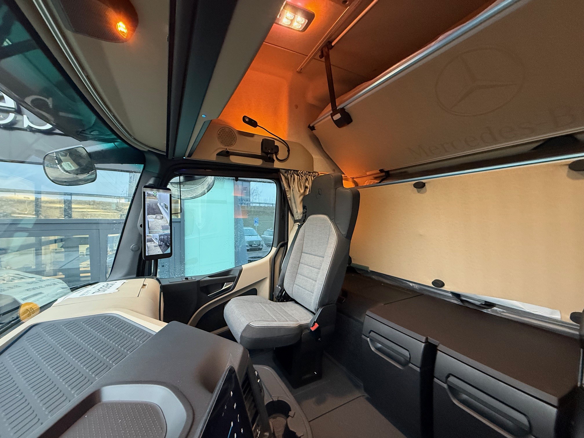 C5P Rám šroubovaný CZE Přední blatník aerodynamicky optimalizovaný C9AC9O Omission aerodynamic underbody panelling D0A Kožený volant D1C Sedadlo řidiče odpružené, komfortní D3F Lůžko horní úzké, komfortní D4E Chránič matrace pro spodní komfortní lůžko D4J Matrace Extra Premium Comfort, spodní D4Q Zrcátko na holení D4S Sluneční clona elektrická, 1dílná D4Z Sluneční roleta, boční, strana řidiče, spolujezdce D5F Ambientní osvětlení LED, Drive and live D5K Světlo čtecí LED 2x, dlouhý nastavitelný krk D5S Potah sedadla řidiče z prvotřídní hladké tkaniny D5T Potah sedadla spoluj. z prvotřídní hladké tkaniny D5Z Kobercový potah na motorovém tunelu D6C Klimatizace nezávislá, elektrická D6G Klimatizace automatická D6I Využití zbytkového tepla chladící kapaliny D6V Hluková a tepelná izolace kabiny D7F Úložné schránky nad čelním sklem, jedna uzamyk. D7G Víka úložných prostorů, na obou stranách D7I Zásuvky do úložných schránek D7K Zásuvka pod palubní deskou D7N Flexibilní odkládací prostor nad čelním sklem D7V Stolek, na straně spolujezdce D8M Střešní okno elektricky ovládané, průhledné E1T Alternátor LIN 28 V / 100 A E1Z Akumulátory AGM, 2x 12 V / 220 Ah, bezúdržbové E3E Zásuvka přídavná 12V/15A, u nohou spolujezdce E3M Zásuvka 24 V/15 A, za sedadlem E3R Zásuvka přídavná 24 V/25 A, u nohou spolujezdce E6Y Akustická výstraha při couvání / varovná světla E8F Konektor USB-C v úložném prostoru nad čelním sklem F0T Osvětlená hvězda Mercedes-Benz F2A Varianta podlahy, rovná podlaha F2H Šířka kabiny 2,50 m F2P Kabina, uložení 765 mm F2X GigaSpace F3C Uložení kabiny komfortní, na vzduchových měších F3R ProCabin Giga, rovná podlaha F4T Horní schod, lakovaný F4U A sloupek aerodynamicky optimalizovaný, lakovaný F4V Aerodynamické zakrytování A sloupku F4Z Úložná schránka vlevo pod kabinou F5E Spoiler střešní,pevný, s boč. spoilery na kabině F5L Sluneční clona vnější F6Q Houkačka podtlaková F6V Držák MirrorCam chrom., spodní kryt v barvě kabiny F7O ExtraLine ProCabin F8H 2 klíče s dálkovým ovladačem, přídavné FAV Kabina ProCabin J2K Reproduktory, 2pásmové K5Q Palivová nádrž se sítkem v hrdle K8D Výfukový systém, konc. trubka vyv. vpravo horiz. L1K Hlavní světlomety LED matrix L1L LED light strip L1P Zadní světla, provedení LED L2G Boční odbočovací světla LED L3G Světlomet pracovní, spodní L6B Intelligent Light Perfomance L9C Elektroinstalace pro přídavná světla, střecha L9AA6O Bez mlhových světlometů vpředu L9AC6O Bez aut. ovládání světel a přisvícení do zatáček M7I Ochrana chladiče před hmyzem O3J Climate Package se zvukovou/tepelnou izolací O3R Actros L O8KDriving Package OYL Stowage Package OYM Sight Package s hlavními světlomety LED matrix OYO Media Package s připojením USB-C OYP Comfort Package, with ExtraPremiumComfort mattress R0L Pneumatiky na přání zákazníka (přední náprava) R8F Držák rezervního kola provizorní R8P Rezervní kolo / rezervní ráfek Y1T Držák na notebook Y3M Protikorozní nástřik rámu