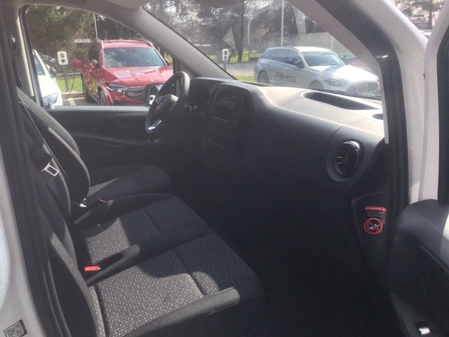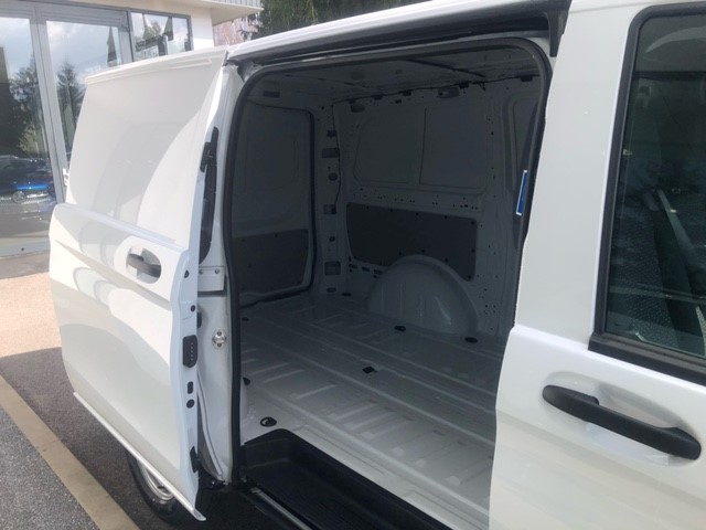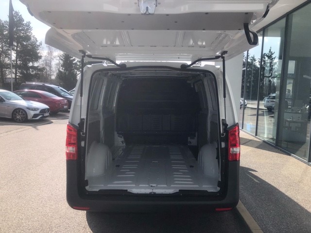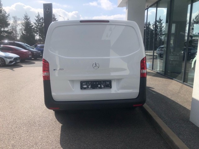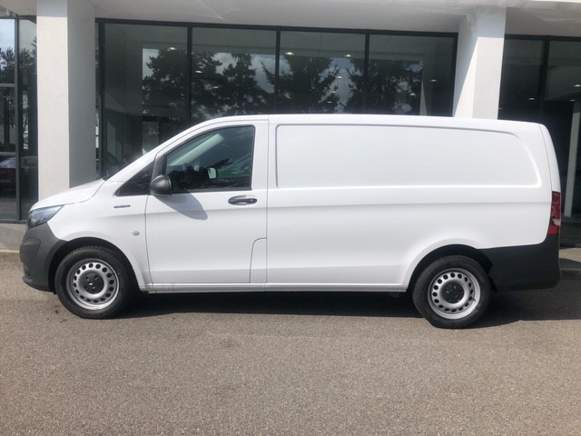 Aktivní brzdový asistent, Funkce HOLD, Standardní odpružení, Volant s možností nastavení výšky a sklonu, Volant multifunkční s palubním počítačem, Dělící příčka, Rozjezdový asistent ,Vysokonapěťová baterie (60 kWh), Akumulátor AGM 12 V 95 Ah, Dvoupásmové reproduktory vpředu, Mme vzdálené služby Plus (na 3roky), Mme vzdálené a navigační služby, Systém tísňového volání Mercedes-Benz, Řešení poruch, Uzamykatelná schránka u spolujezdce, Dálkové ovládání s více tlačítky, Vyhřívané sedadlo řidiče, Determální skla, Akustický indikátor, Varování zapnutí bezpečnostního pásu spolujezdce, Údržbový paket, Dešťový senzor, Komunikační modul LTE pro digitální služby, Sdružený přístroj multifunkč. s graf. displejem, Asistent sledování pozornosti, Asistent potkávacích světel, Světla brzdová, adaptivní, Elektromotor 85 kW / baterie 60 kWh, Ocelové ráfky 6,5 J × 17", Airbag spolujezdce, Polovysoké obložení stěn nákladového prostoru, Tkanina sedadel Caluma černá, Zadní výklopné dveře, Celková hmotnost 3,2 t, Zásuvka 12 V, Dva držáky nápojů, Centrální zamykání s dálkovým ovládáním, Imobilizér, Otáčkoměr, Kontrola zapnutí bezpečnostních pásů řidiče, Indikace vnější teploty, Asistent pro potlačení vlivu bočního větru, Halogenové světlomety, Tažné zařízení, Airbag řidiče, Posuvné dveře vpravo, Elektricky ovládaná okna