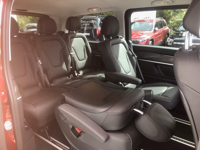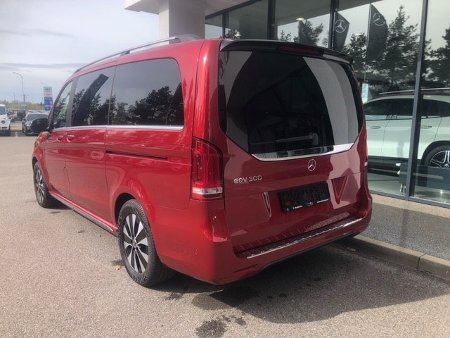 Přední design EQV High, Osvětlený nástupní schůdek s náp. Mercedes-Benz, Práh vnější AMG podélný střešní nosič - Eloxovaný, Integrace chytrého telefonu (CarPlay/Android Auto), Regulace odstupu DISTRONIC PLUS, Navigace Plus, Paket parkování s kamerou 360°, PARKTRONIC, Dekor vzhled dvojitý pruh, Černě lakovaná zpětná zrcátka, Automaticky sklopná vnější zrcátka, Automaticky cloněné vnitřní zrcátko, Spoiler AMG na zadních dveřích, Elektronický klíč s chromovým vzhledem, Středová konzole luxusní s roletou, Palubní deska v kůži, Paket zrcátek, Komfortní centrální zamykání s dálkovým ovládáním, Automatická klimatizace THERMOTRONIC, Klimatizace a tepelný výměník do prostor pro cestujících, Kamera 360°, Ambientní osvětlení interiéru, Osvětlení okolního prostředí ve zpětných zrcátkách, Osvětlení stropního madla s čtecím světlem, Systém inteligentního osvětlení LED (ILS), Brzdové a zadní světlo LED, Asistent dálkových světel PLUS, Systém inteligentního osvětlení LED (ILS), Projekce loga značky, ALU kola 7,0Jx17", Rezervní kolo se zvedákem, Nastavení délky sedáku řidiče, Nastavení délky sedáku spolujezdce, Paket komfortního sezení, Odvětrávání sedadla řidiče, Odvětrávání sedadla spolujezdce, Bederní opěrka sedadla spolujezdce, Bederní opěrka sedadla řidiče, Elektricky seřiditelné sedadlo řidiče, Elektricky seřiditelné sedadlo spolujezdce, Odkládací síť za sedadlem řidiče, Odkládací síť za sedadlem spolujezdce, Posuvné dveře vlevo, Elektrické ovládání posuvných dveří vpravo, Elektrické ovládání posuvných dveří vlevo, Komfortní trojsedadlo v 2. řadě sklopné sedadlo pravo, Potah sedadel kůže Lugano černá, Zadní výklopné dveře se samostatně otevírat. oknem, Elektrické ovládání zadních dveří EASY-PACK, Černá tónovaná skla vzadu, EQV design paket Exteriér, Linie AVANTGARDE